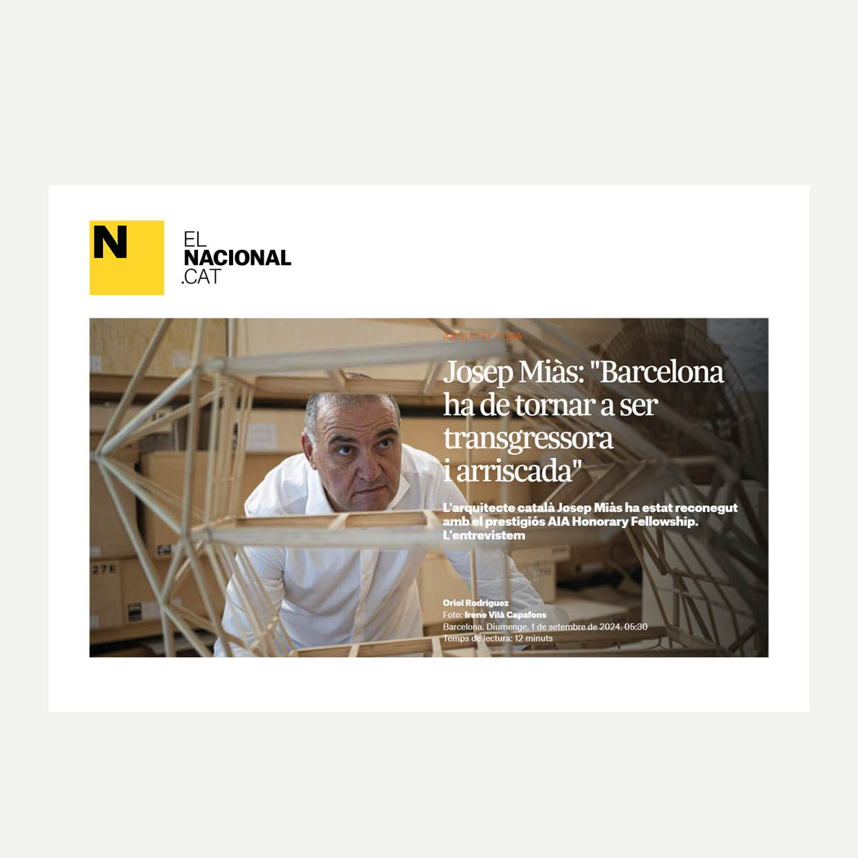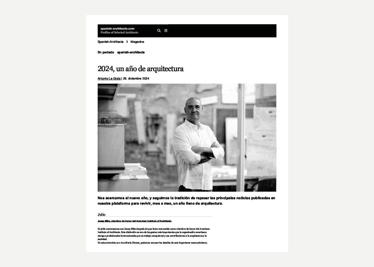 LINK: Josep Miàs, recognized as an honorary member of the American Institute of Architects, was highlighted as one of the most significant events of 2024 by SpanishArchitects.com