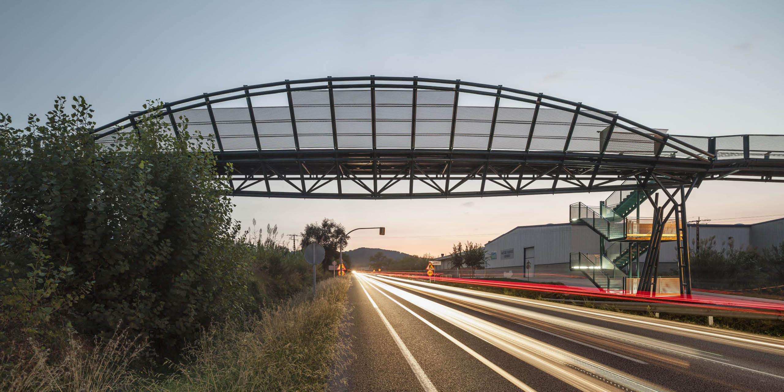 MIAS Architects completes a footbridge in Palafolls, Spain. The footbridge is formed by a 168-metre long continuous ramp and has three different sections according to the three areas.
