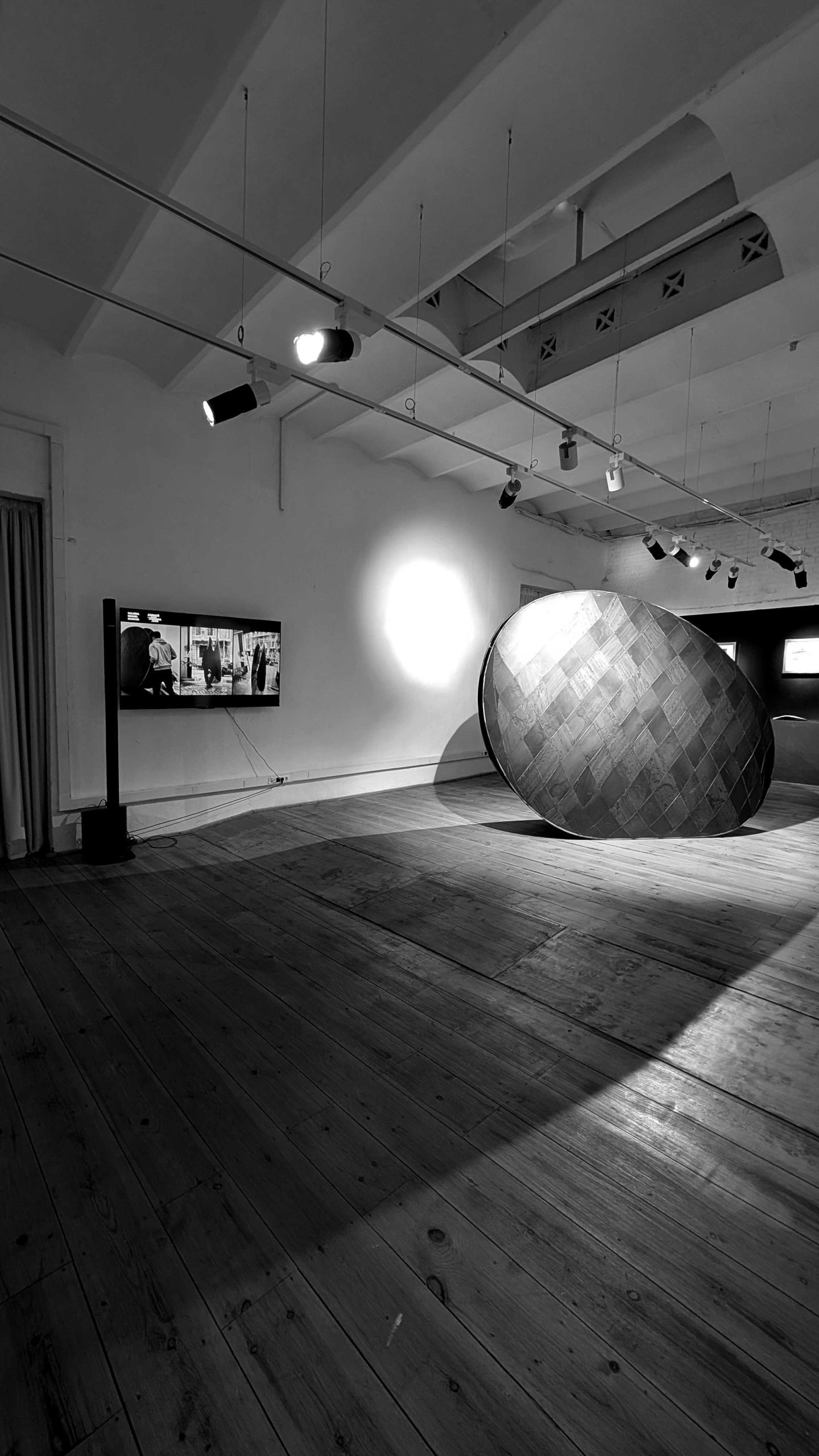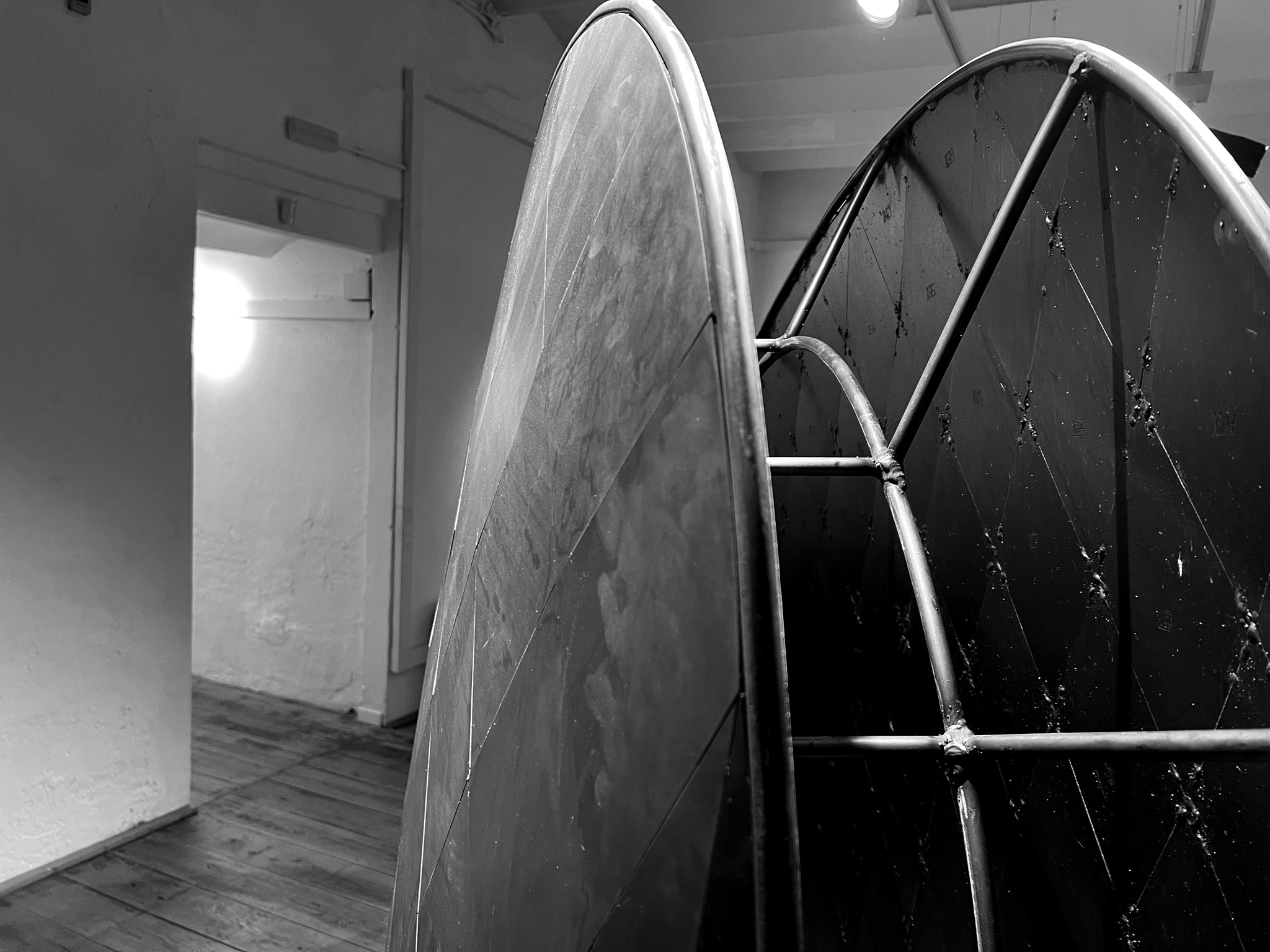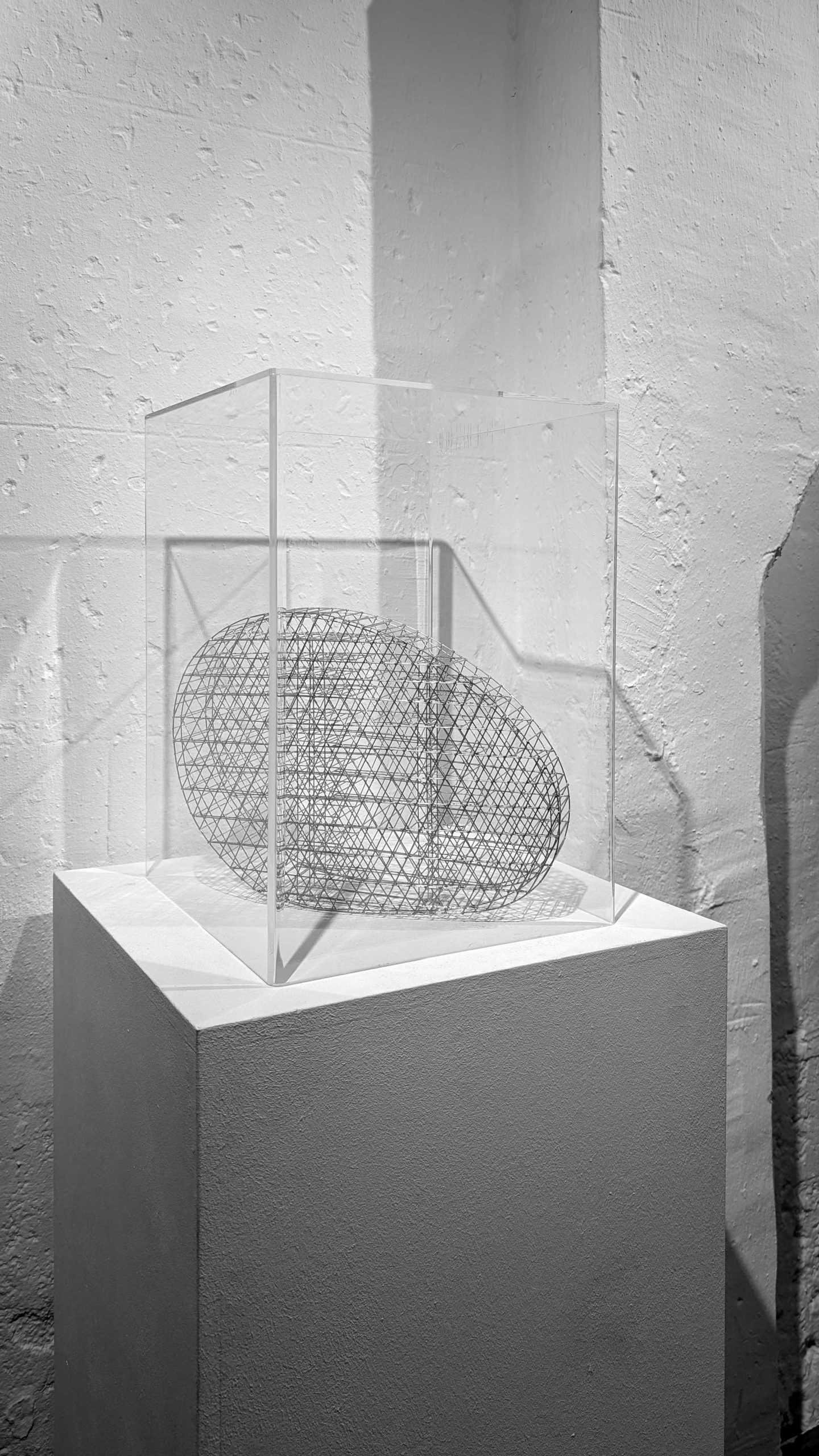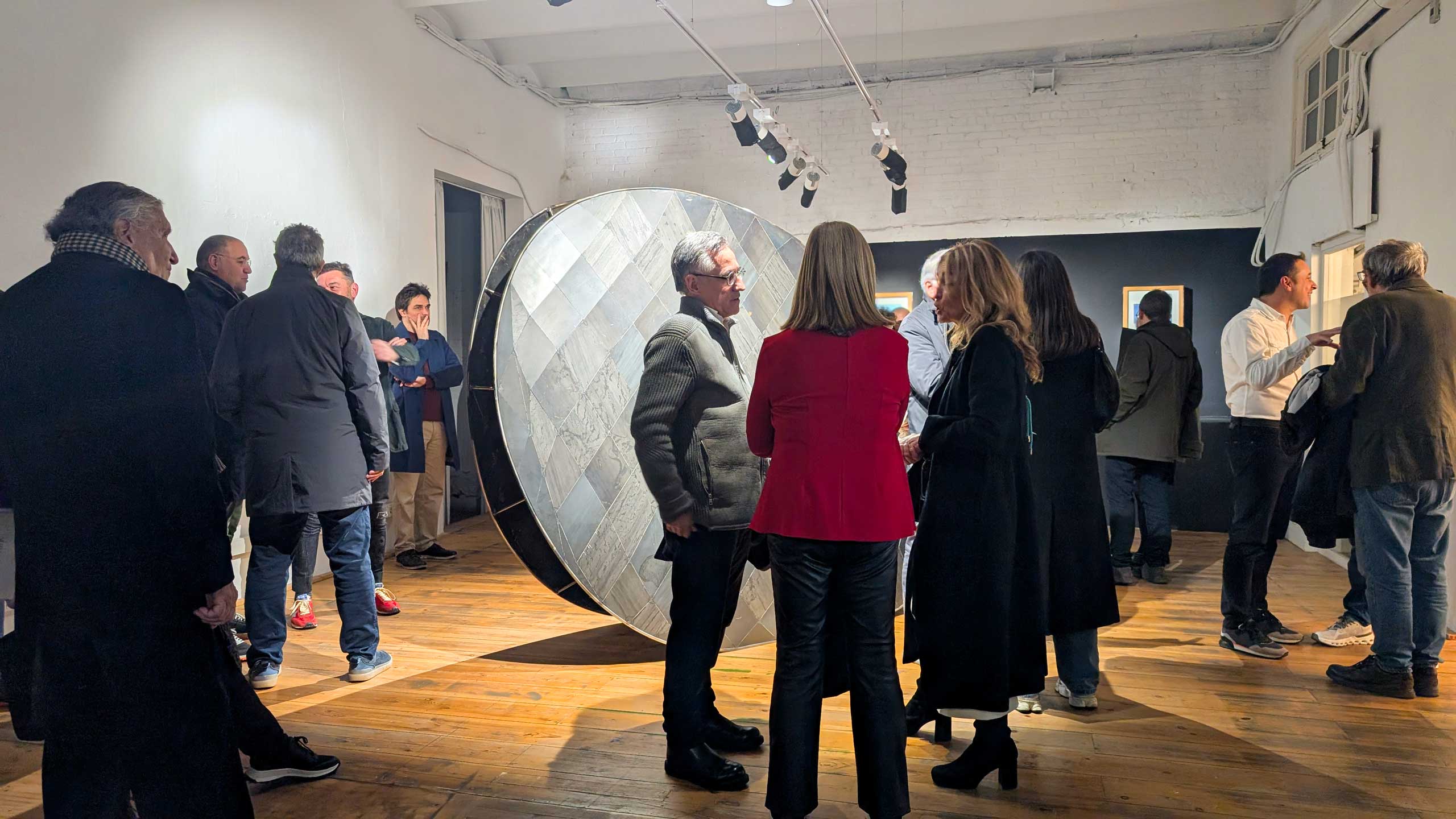 The centerpiece of the exhibition is a large metal sculpture that modifies the perception of space and generates a certain visual tension. This work is based on a smaller work of galvanized iron that is currently exhibited, along with other pieces, at the Miguel Marcos Gallery.
