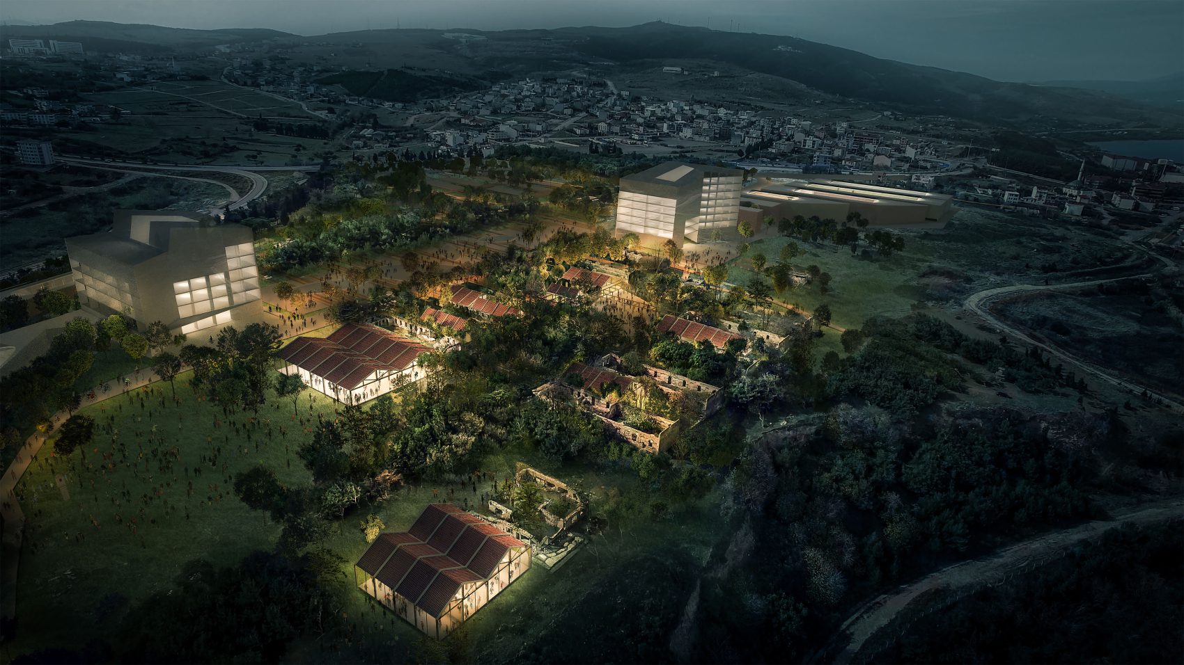 The project highlights the existing architectonical heritage and ruins. It aims at bringing the historical buildings back to life not just in a contemplative manner but in an active way placing the historical heritage at the center of the stage and making it the main protagonist of the site. The area results comprehensible, publically accessible and socially inclusive in all its layers meaning that the structure of the plan and park is clear and diversified dividing the roads from the pedestrian and biking infrastructures. The master-plan is designed around the green spaces and the design institute and planned so that the existing natural habitat can be maintained in its entirety. On the upper north-west side close to the city’s infrastructure and built context we place the majority of the retail complex and following the new main road/axe inside the area hotels, parks, design centres and parking facilities are designed. The existing ruins are integrated in the design complex working around the existing buildings but incorporating them in the project with great respect towards the existing nature and context; “we design on tiptoes”. Our project works within spaces and footprints and in the Design Center we incorporate the ruins in a way that the existing constructed part becomes the open-air entrance courtyards for the institute; Constructed and voids are inverted and historical heritage is preserved and enhanced while working around each existing tree and preserving the local flora and fauna.