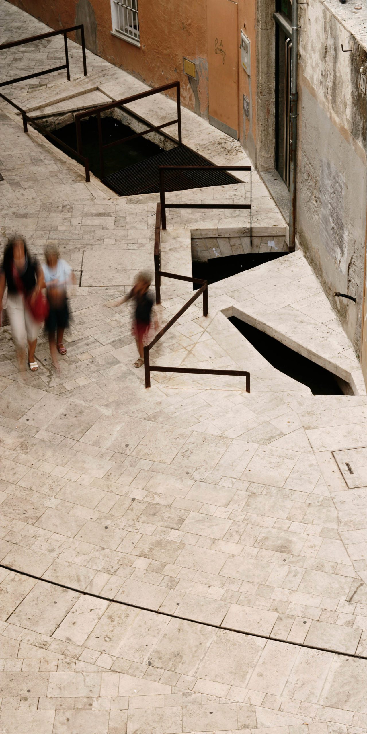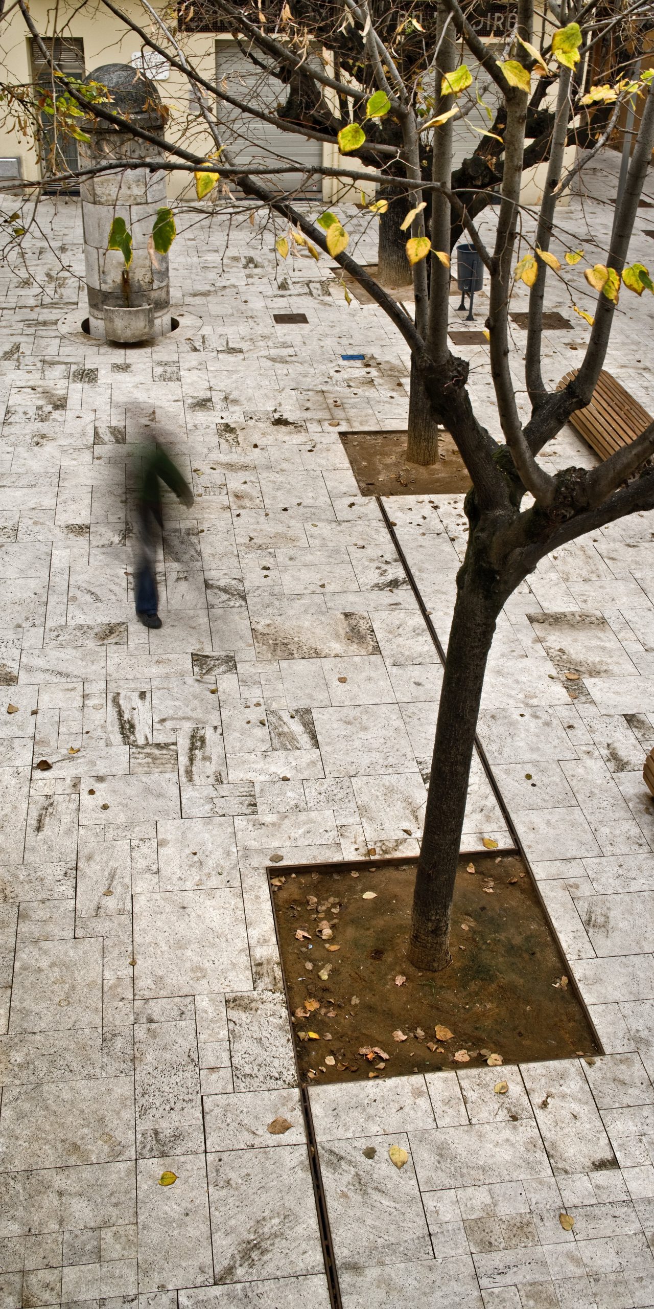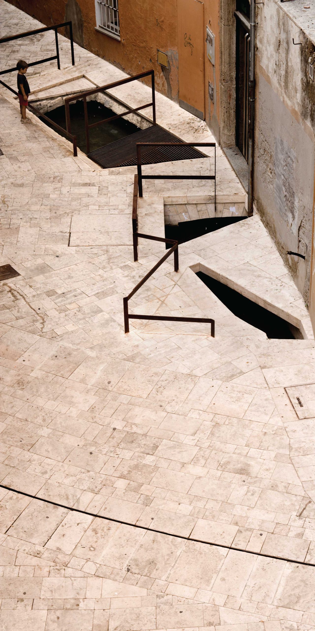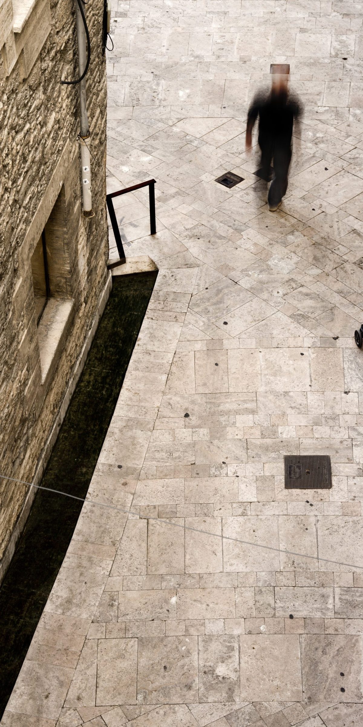 The irrigation canals that originally were clean had become part of the sewer system of the city. Around Central Square, sidewalks turned into random parking lots limiting pedestrian access to the whole area. The refurbishing process was to pedestrianize the whole area, removing all the old sidewalks, and returning the centre to its inhabitants. As all the enigmatic buildings, churches, medieval houses or monuments were raised with travertine, the new intervention is planned with the same calcareous stone, that always was present in the city’s subsoil. The departing point is to cover Central Square (the most relevant part of the project) using a tessellation of travertine.