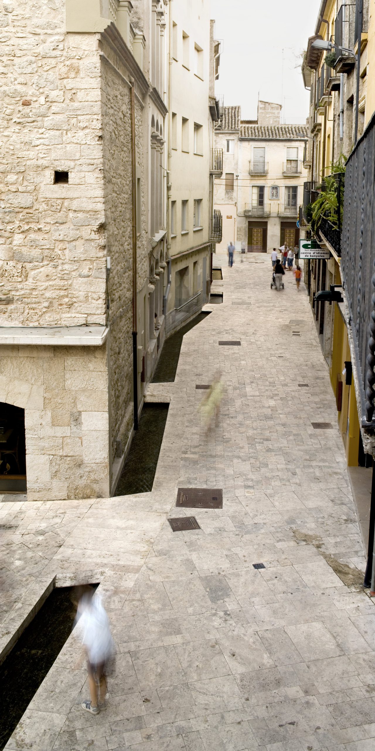 Re-paving the city centre opens a new pedestrian area and corresponds to a part of Banyoles in which the traces of the medieval age are still present. In fact, the urban planning at the historical centre shows up as a sequence of squares. Most of these names are given due to the buildings to which the squares give access (mainly churches and museums). The project restores the circulation of people and water through the old town of Banyoles, giving them back the itineraries they occupied originally.