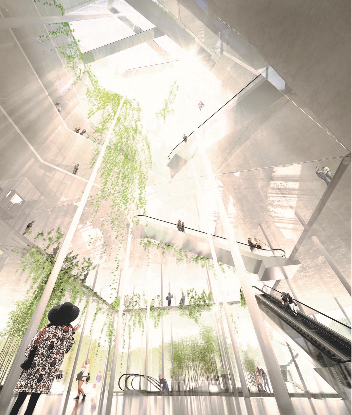 For this building is inspired by natures vertical landscapes and bamboo forests. We want to build a ‘‘bamboo forest’’ on site – a forest composed of the regular steel and concrete grid structure, which will lift the whole building up in the air and offers a continuous green public square in the ground floor that will serve as building’s main lobby. The building will be composed of three main groups of levels, starting with the Musem in the bottom group, the Gallery in the intermediate group and an Art Gallery as the final group. The rooftop terrace will act as a culmination to the spacious ‘‘bamboo garden’’ growing throughout the whole building.