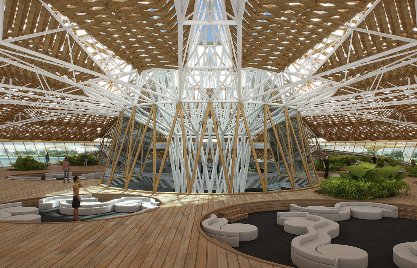 The sea park is like a house garden that welcomes visitors to discover the very identity of the island through its plants, birds and ponds. It is also a reference for locals, who can enjoy outdoor space for sports and leisure activities. In such a particular context, the project should be considered in a global way: there is no real boundary between architecture and landscape; buildings are part of the complex park as a system or a constellation of elements. All the buildings have been integrated into the project, becoming part of a continuous green pergola where plants can grow, rich in space and landscape diversity, becoming a new landmark for the present and future Kinmen and thus, Taiwan. The Passenger Service Centre is, ultimately, a big roof that hovers over the park. It is a grand pergola that frames the horizon and the sea, filtering sunlight to achieve complete illumination control, while letting natural light reach all the areas through skylights.