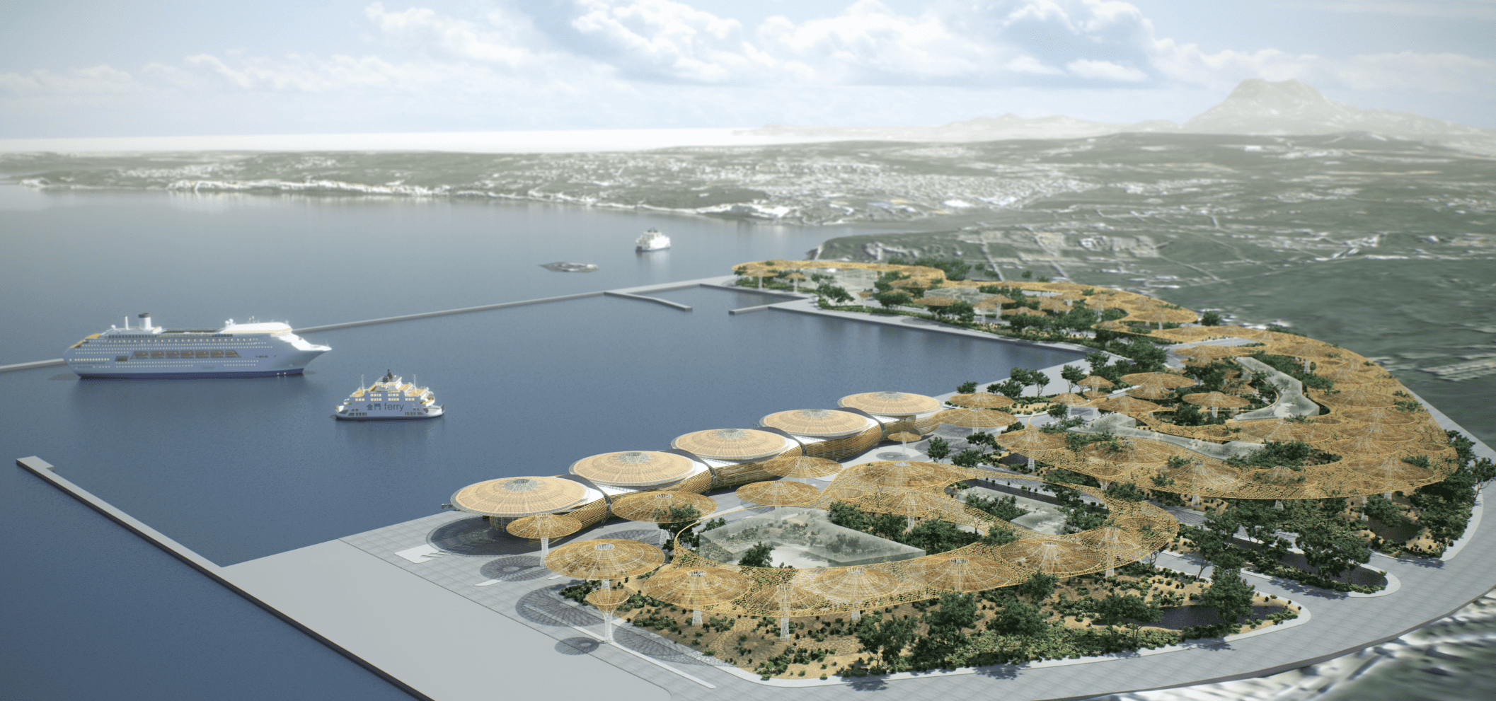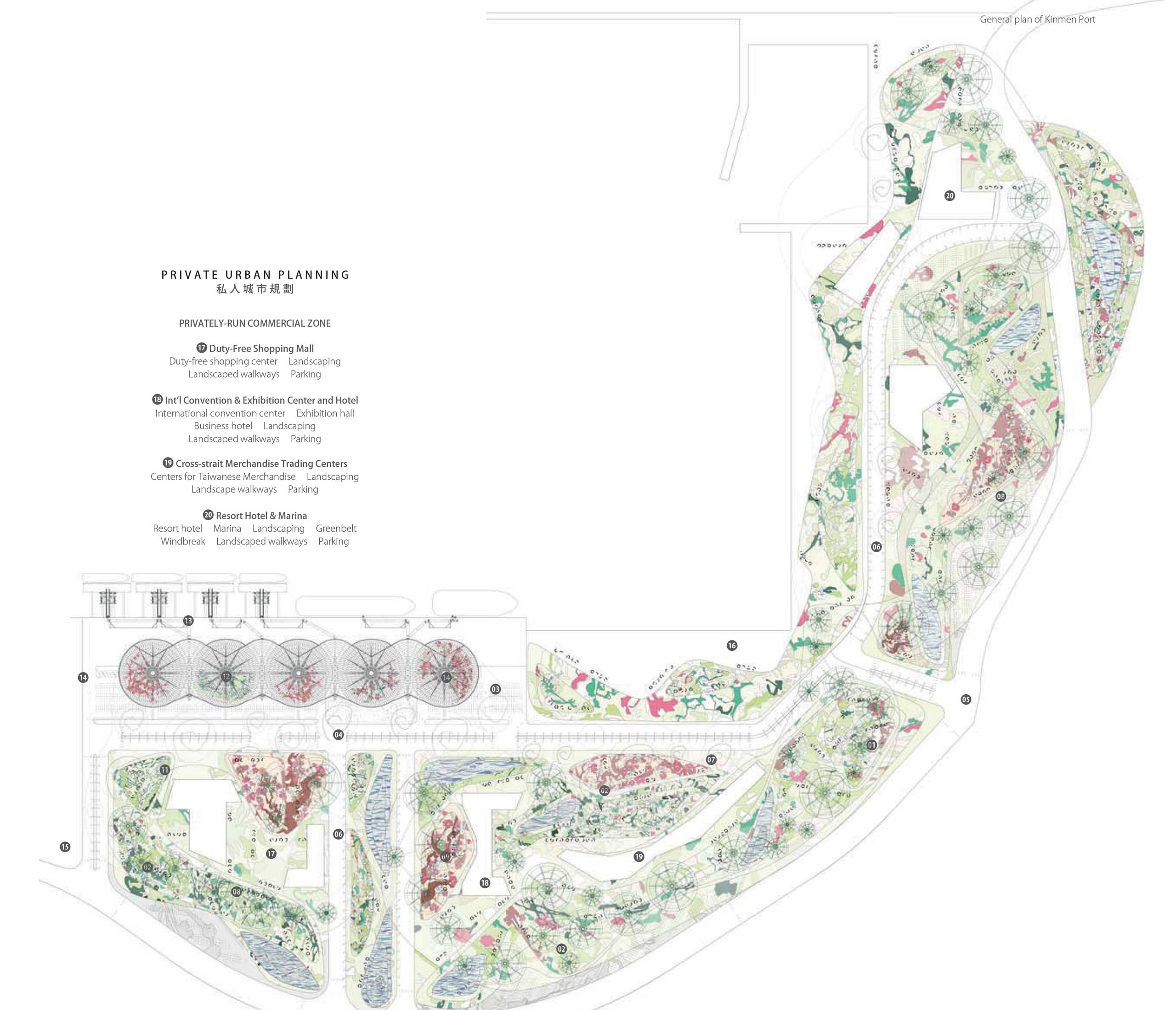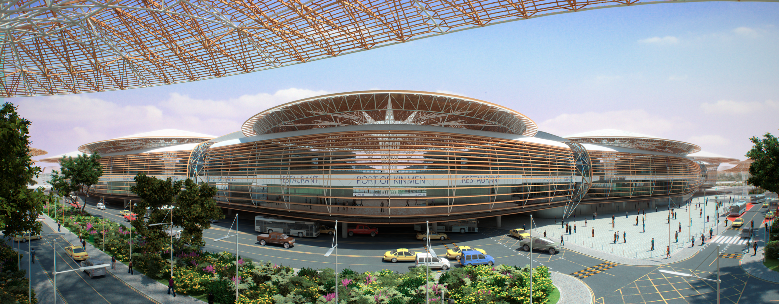 As the island was formed, the whole complex of Kinmen Port is horizontal, with slight topographic differences to respect the profile and scale of the territory, overlaid with a set of umbrellas located all over the area, creating shelter for buildings or shade for the park. The umbrellas roof landscape will become the most representative image of the project.
