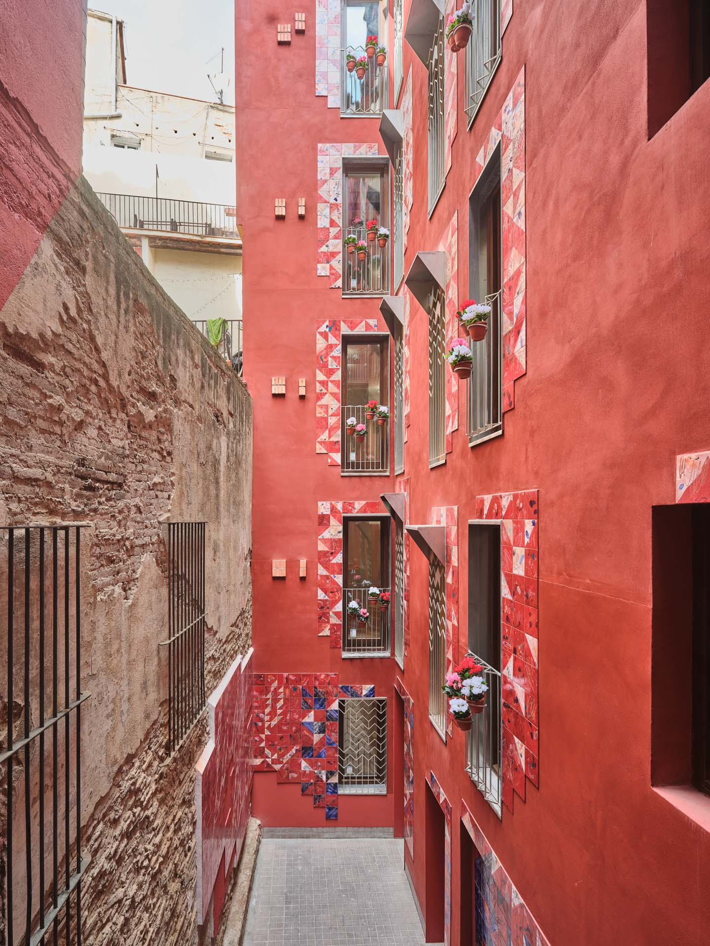 The building is situated in the heart of Barcelona’s Raval neighbourhood, a historically complex area within the city’s old town. In response to long-standing urban challenges, the Rambla del Raval was inaugurated in 2000 with the aim of revitalising the area by interrupting the dense, compact urban fabric and introducing a generous public space for all residents.