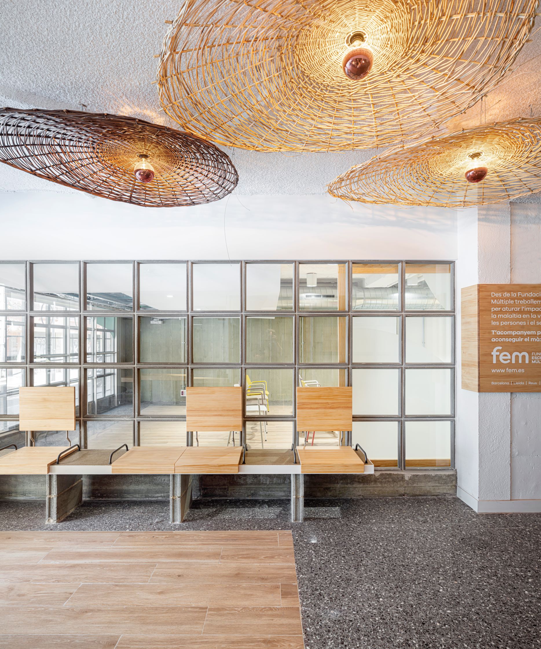 We want this passage to organise the entire interior space, and to help understand the centre as an open space for everyone. The path of this passage is made visible and distributes the different center spaces. This passageway is designed so that it does not have the hallway conditions, but rather with nonlinear spaces, with contractions and dilations, so that all kinds of activity can be done and is an internal-external space of rest and relationship. It is the place where the general public is served, where the talks are made, the most public activities, where it is eaten at noon or where a break or break from daily work is done. It is designed in such a way as to be a friendly and informal space, with comfortable furniture and a public space, and with point gardens that provide green.