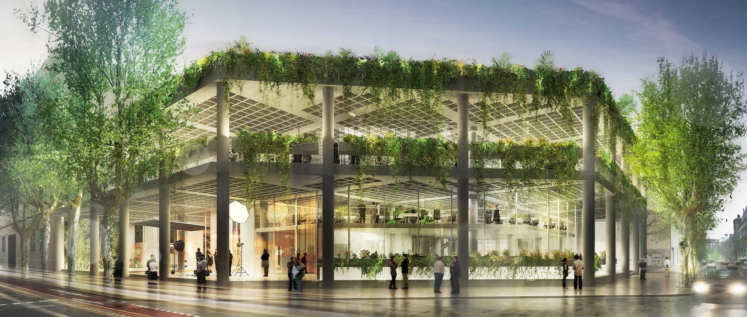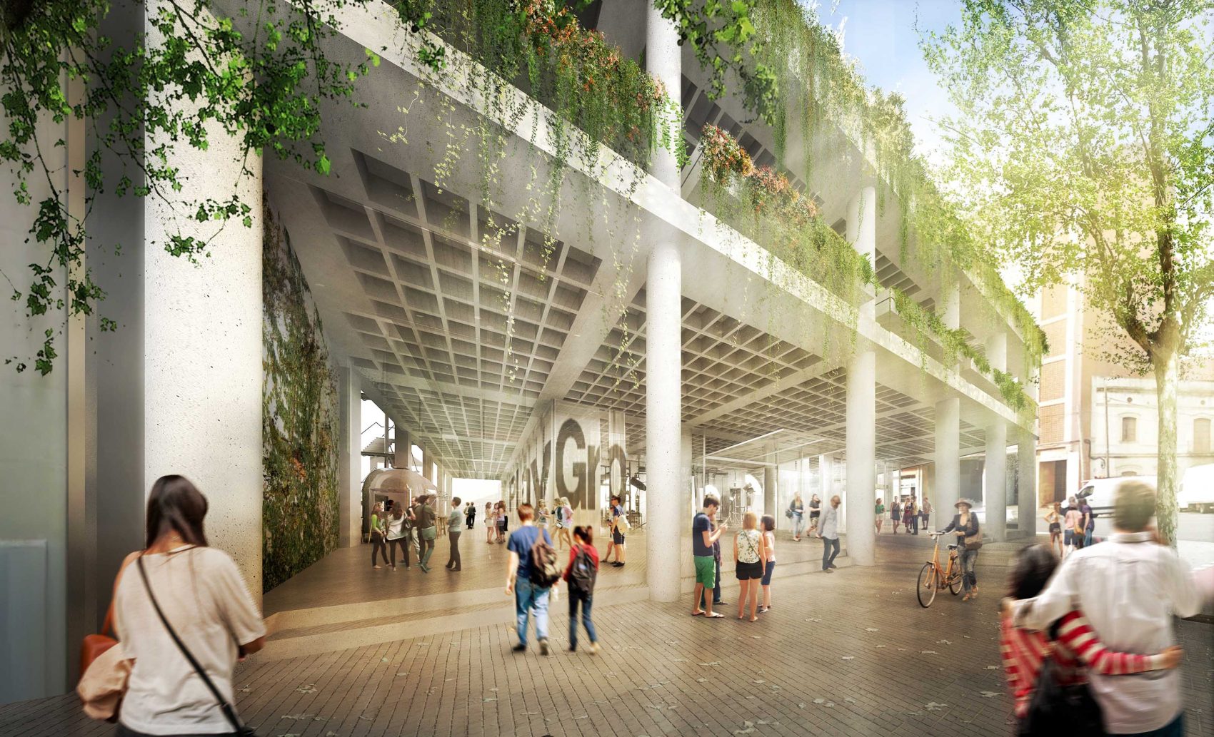 The building is still designed to be transparent and visually connected, thus the division mechanisms for the offices will be industrials and large, similar to large curtains or rolling shutters, always following the modulation of the structural grid. The spaces ‘in-between’ the offices are given temporarily to the city. A new event space is left on the lower floor and a public garden/orchard is designed on the terrace. All the public spaces will become covered streets with bars, restaurants and the existing ramp becomes a focal space for relaxation, connection and leisure with bars and event spaces