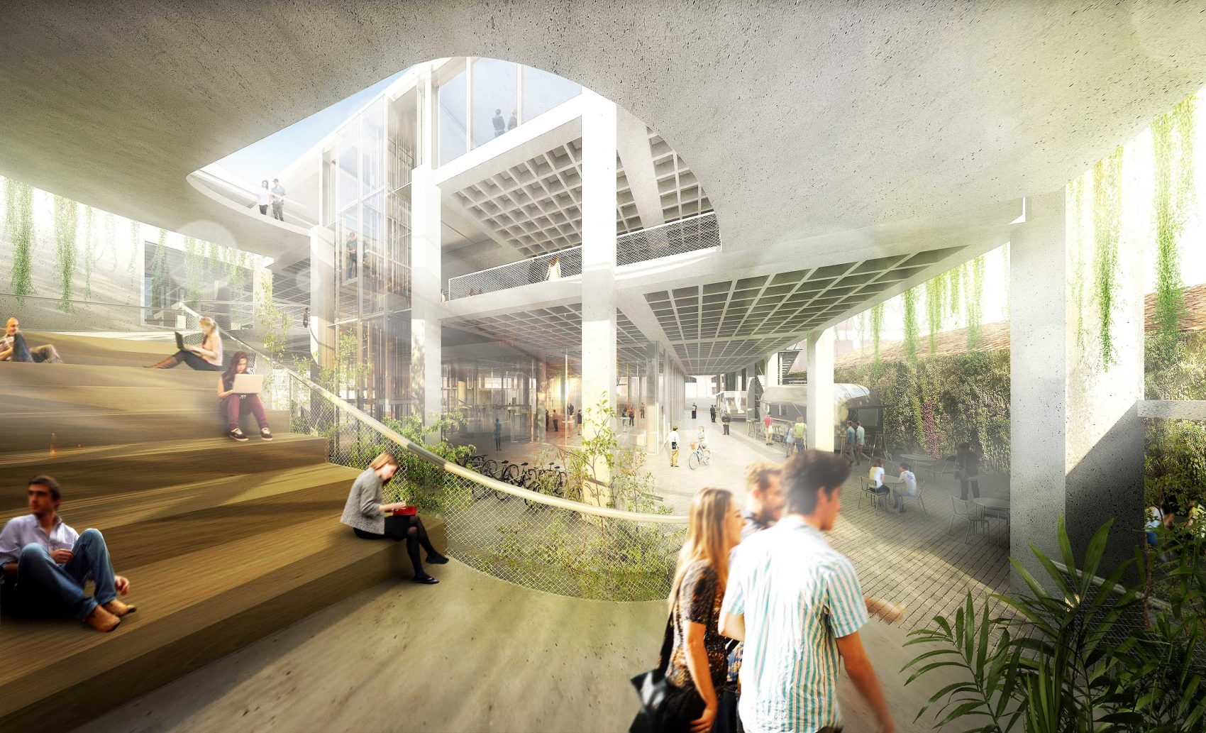 We will occupy the building as it occupies public spaces, prolonging artificially the city inside the building, with clearly define the play ground and community spaces. The building is treated as a public space. The city continues inside the walls to allow a permeable and flexible urban space. The spaces for the Playground offices, co-working and campus are clearly defined to allow the plan to function in an organized and effective manner.