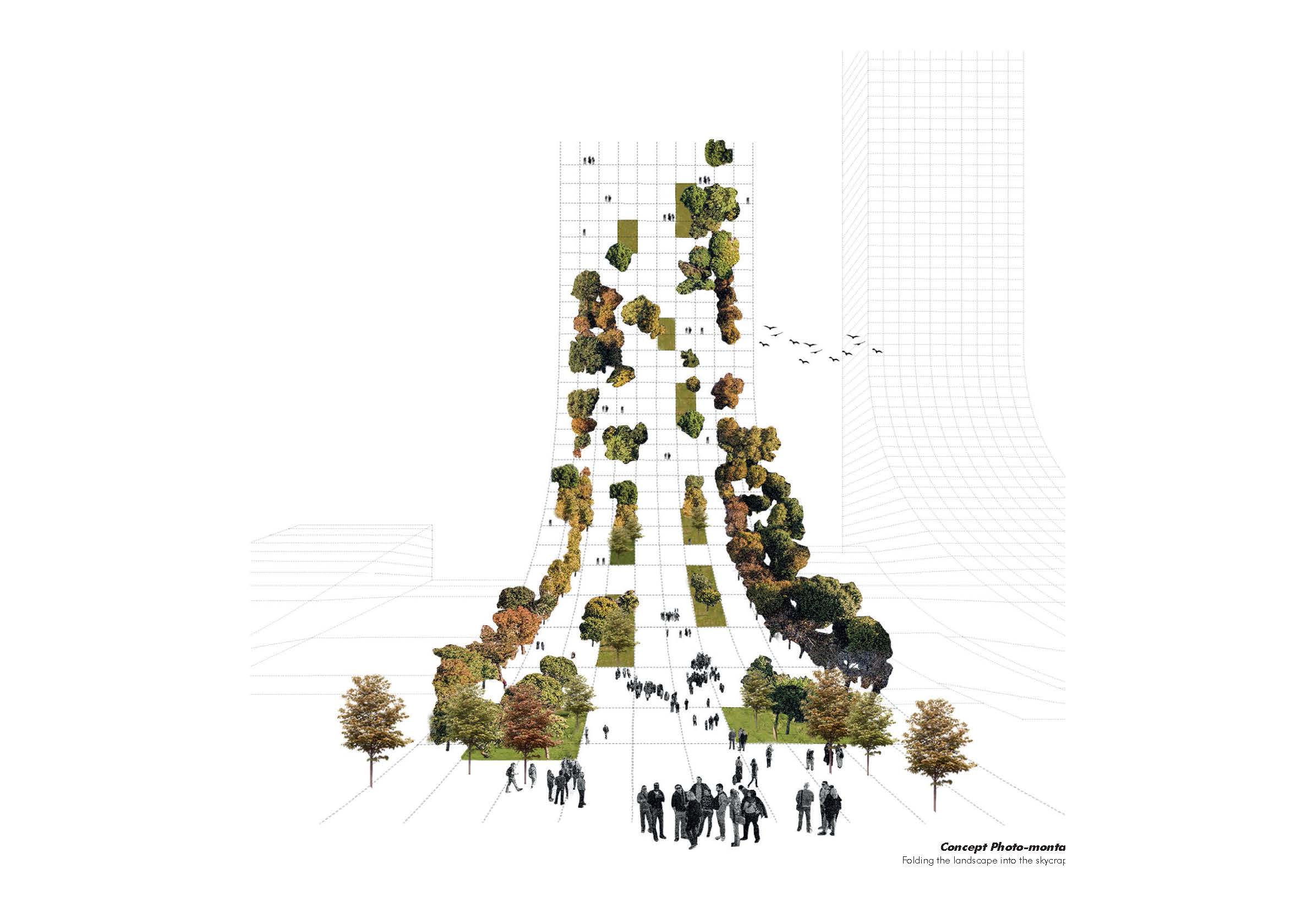 In essence, the vertical garden that builds the proposal, articulates the various skyscrapers and becomes a meeting point for the city and the park.